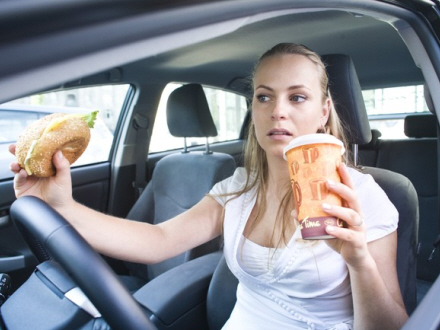 Specielt en lastbilchauffør kom i fedtefadet, da han blev taget i at tale i telefon og spise mens han styrede sin last bil.