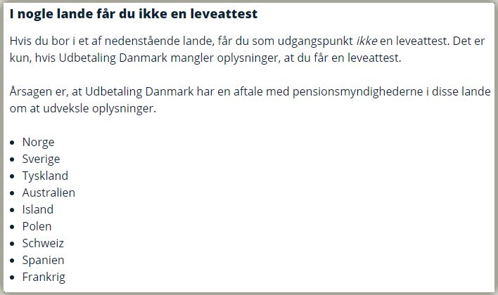 Kilde: >Husk at bekræfte, at du er i live https://www.borger.dk/pension-og-efterloen/International-pension/Dansk-pension-i-udlandet/International-pension-modtage