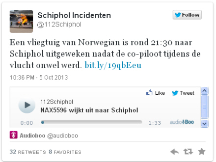 Tweet fra lufthavnen: Et Norwegian-fly landede i Schiphol omkring klokken 21:30, da flyets andenpilot blev syg