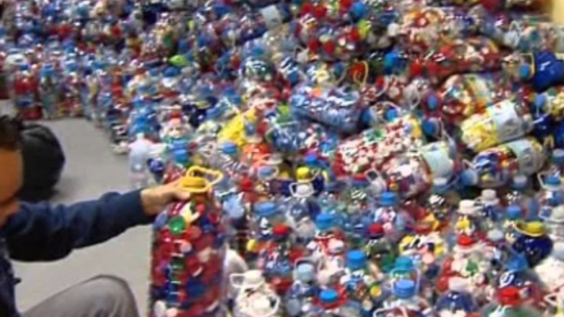 Flaskelåg er lavet af plastik, der ikke er genbrugt, og har derfor en højere værdi på markedet end almindelig genbrugsplast.