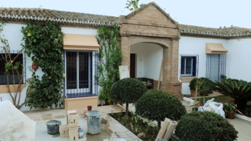 Inden for murene har håndværkere i disse dage nu travlt med totalrenovering af villaen, som har et boligareal på 304 m2 plus gårdhaver og overdækkede terrasser.