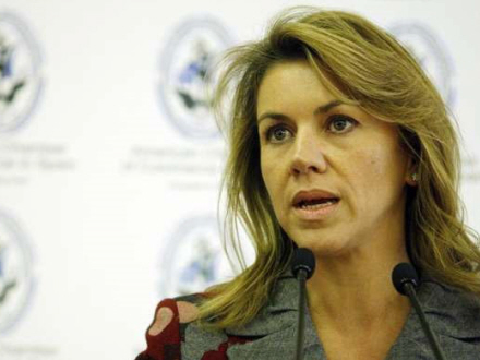 Hun afviste derfor at kommentere påstandene om, at den tidligere administrerende direktør for virksomheden Sacyr, Luis del Rivero, skulle have betalt det konservative parti i Castilla-La Mancha 200.000 euro i forbindelse med partiets seneste valgkamp. Den varetægtsfængslede eks-kasserer, Luis Bárcenas, hævder at have beviser for at den betaling fandt sted.