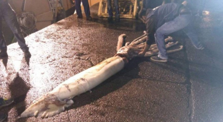 Tidligt om morgenen var et par fiskere i gang ud for asturiske kyst ud for Villaviciosa. Besætningen ombord på den galiciske fiskebåd Minchos VI fik ved et uheld fanget et eksemplar af en kæmpeblæksprutte, der vejede omkring 150 kilo og var 10 meter fra hoved til fangarme.