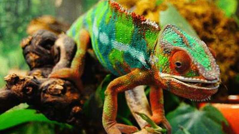 VIDEN & HYGGE: For tiden kan du være heldig at møde en af de sjove kamæleoner i det fri. Og farven afslører, om den er klar til kamp, hygge eller parring.