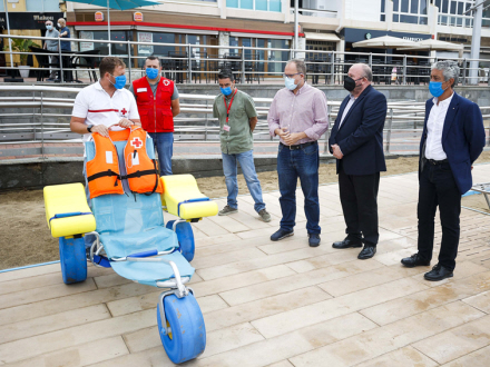 På denne måde vil brugerne af stranden i Las Canteras fra denne uge få adgang til nyt specifikt materiale som f.eks. en såkaldt amfibiestol til voksne, amfibiekrykker, en fire-hjulet sammenklappelig rollator City med sæde, en hydraulisk kran, en tilpasset dækstol med hjul, borde og stole med armlæn og et sammenklappeligt massagebord.