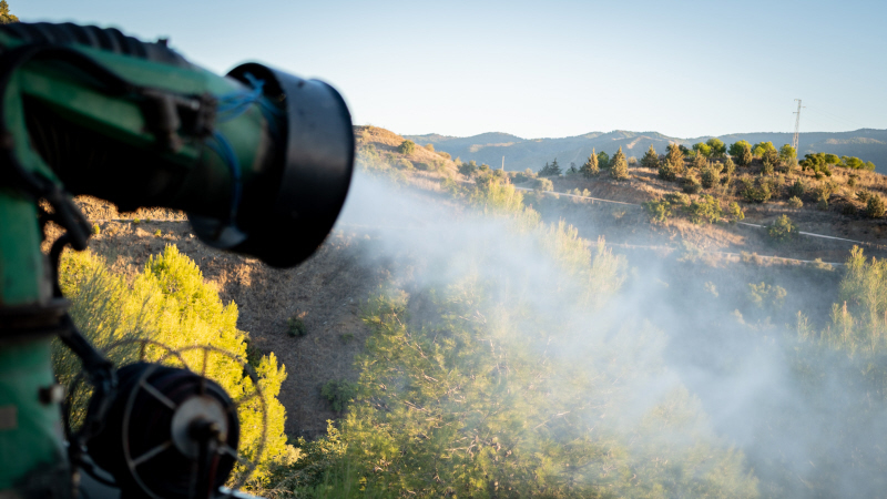 Arbejdet, der udføres af mandskab udstyret med en projektionskanon og langtrækkende sprøjtepistol til sprøjtning af plantebeskyttelsesmidler, er allerede udført i skovparkerne Gibralfaro, Hacienda Clavero, Monte Victoria, Virreinas, La Pelusa og Cerrado de Calderón.
