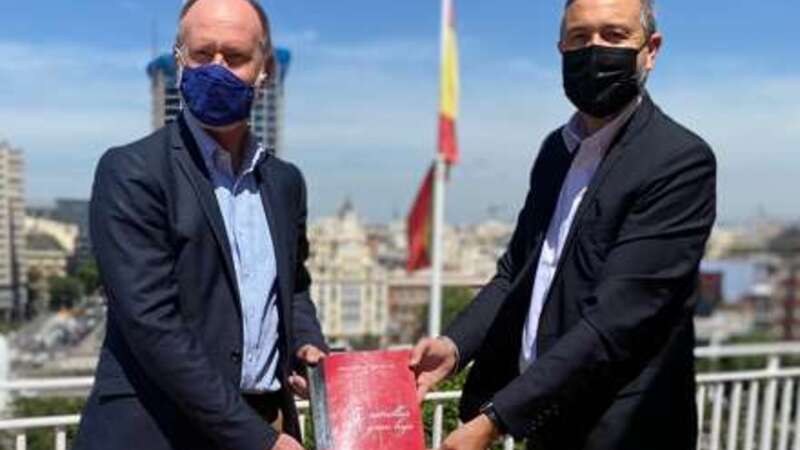 TURISME: Den danske Ambassadør i Spanien, Jens Kisling, får overrakt bog af advokat Javier García León.