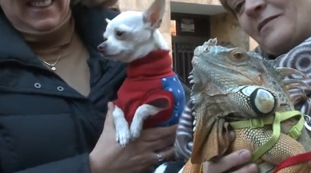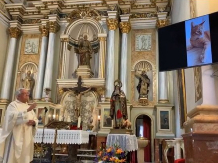 Efter den traditionelle højmesse søndag blev billeder og videoer fra borgerne vist på to store skærme placeret over alteret, så sognepræsten kunne velsigne dyrene i San Antonios navn.