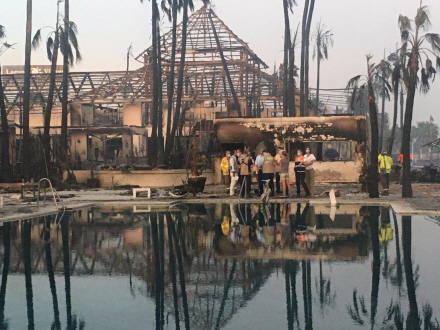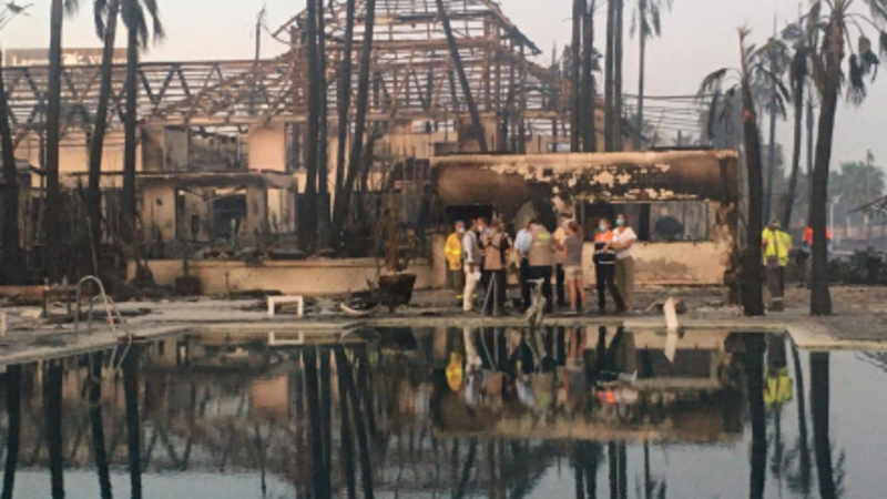 På grund af den hårde vind sprang ilden lynhurtigt og endte med helt at fortære et shoppingcenter og delvis et luksusresort samt skade andre omkringliggende boliger.