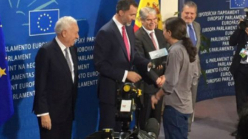 Kong Felipe VI vil være i Bruxelles for at møde spanske parlamentarikere i Europa-Parlamentet, herunder lederen af Podemos, som har oplevet en kæmpe vælgertilslutning siden sin stiftelse for lidt over et år siden.