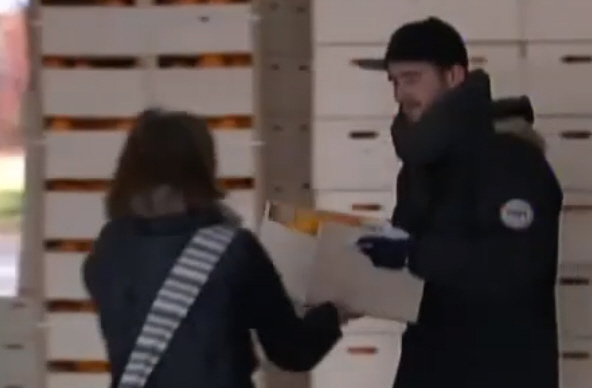 I år gik frugtleverancen som smurt i olie. Kølervognen med varerne ankom allerede forrige fredag, og dagen efter var der gang i butikken.