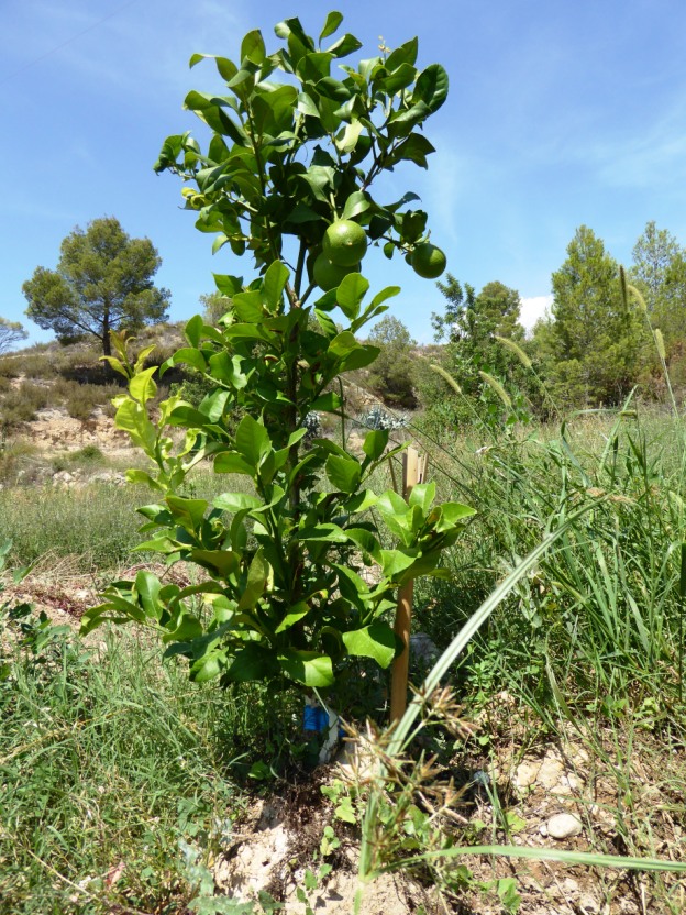 Ole har endnu ikke opgivet citronerne, som måske er klar næste år. Her er et lille "baby-træ" fra 2014