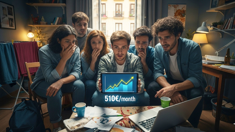 Ifølge en undersøgelse fra ejendomsportalen Fotocasa koster det at dele en bolig i Spanien nu gennemsnitligt 510 euro om måneden.