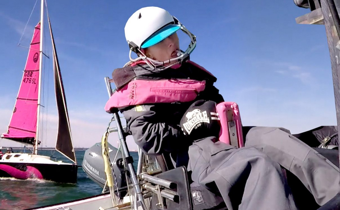 Den 23-årige er spastisk lammet, og båden er derfor blevet specielt tilpasset hendes tur over Atlanterhavet, så hun kan styre med sit åndedræt og tungen.