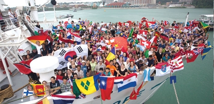 Ombord er 400 frivillige medarbejdere fra 60 nationer, evangeliske, born-again kristne, som ønsker at være med til at sprede en følelse af sammenhold og fællesskab i hele verden.