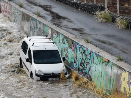 Det gav oversvømmelser på Gran Canaria og væltede træer. Og på fastlandet i Peñaflor, Sevilla, måtte 25 beboere evakueres, da et 17 meter højt fyrretræ var faretruende tæt på at brase ned over deres huse.