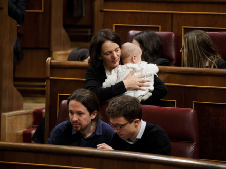 Carolina Bescansa har både høstet ros og kritik for at tage sin søn med på arbejde. Mange af kritikerne argumenterer med, at der er en ansat personale til at passe kongresmedlemmernes børn, mens de er på arbejde.