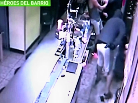 Den 28-årige ejer, Toni Lázaro, af en bar i Blanes ved Girona, var smurt til i blod, da han efter en heltemodig indsats tidlig søndag morgen - med hjælp fra andre borgere - pågreb to maskerede røvere, der forsøgte at stikke af med 480 euro.