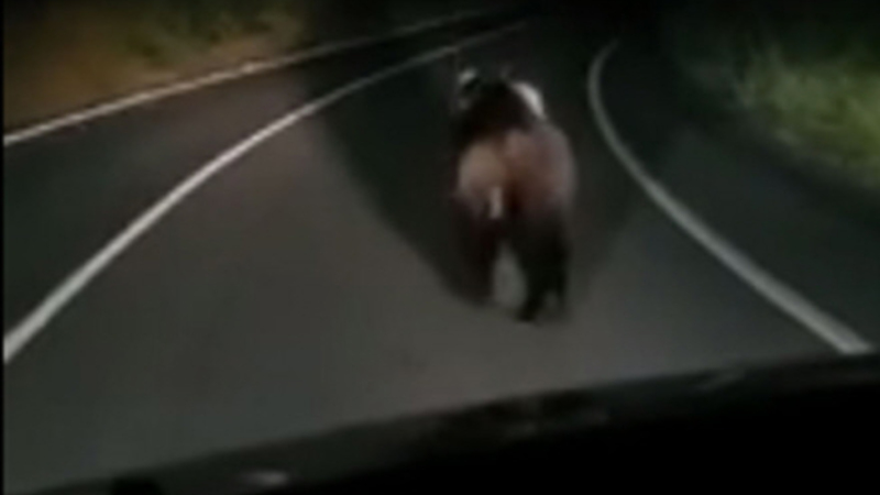 Det er ret usædvanligt at se bjørne på vejene, men det er parringstid i øjeblikket, og derfor bevæger bjørnene sig rundt i større områder.