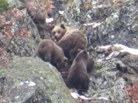 Varme vintre får spanske bjørnene til at udskyde deres dvale. En brun hunbjørn er for et par dage siden set traske rundt med sine tre unger i den catalanske del af Pyrenæerne.