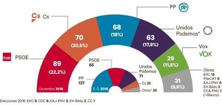 I meningsmålingen fra Metroscopia publiceret i 20minutos, skriver avisen: “Kongressen har nu hverken flertal til højre eller venstre, og det efterlader landet i en situation, hvor det er stadigt sværere at regere.”