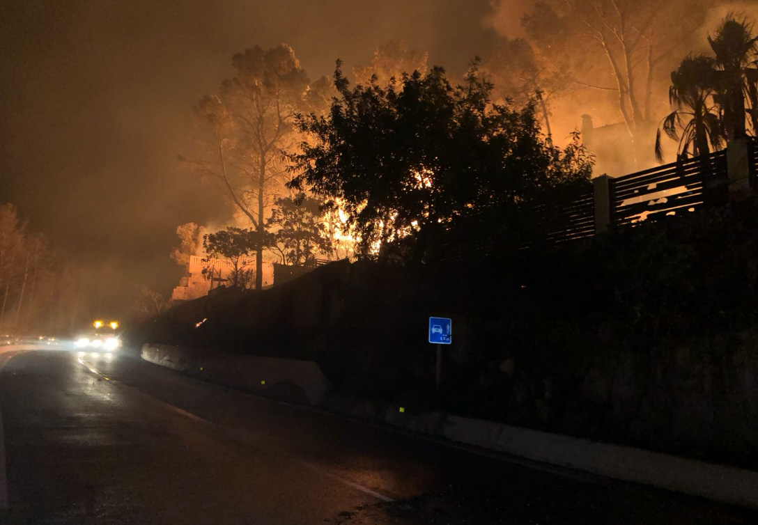 Skovbranden, der blev erklæret mandag morgen i den valencianske kommune Llutxent har haft en nat med optimale betingelser.