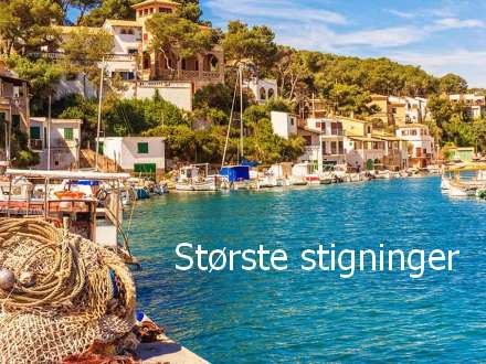 Sammenlignes priserne med det laveste niveau i februar 2015, ligger priserne i dag 14,9 procent højere på landsplan. Balearerne er steget mest med 24,1 procent, mens resten af kommunerne er steget mindst med 4 procent.