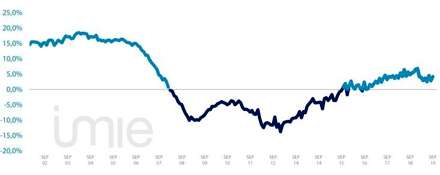 Sammenlignes priserne med det laveste niveau i februar 2015, ligger priserne i dag 16,7 procent højere på landsplan. Balearerne er steget mest med 28,9 procent, mens byområderne er steget mindst med 5,9 procent.