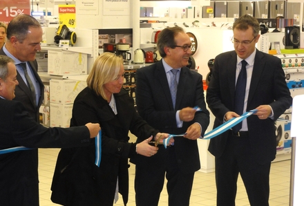 Silkesnoren klippes af Fuengirolas viceborgmester Ana Mata Rico, Arturo Montalvo, regionaldirektør for Carrefour i Andalusien og Francisco Domínguez Almellones, direktør for non-food i Carresfour España