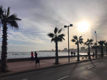 Stærk vind fra syd til det meste af halvøen. Vedvarende nedbør i Galicien, bjergene i de indre egne og i Pyrenæerne, og vi kan ikke udelukke, at der lokalt bliver tale om ret kraftig nedbør. Snefald i bjergene på halvøen.