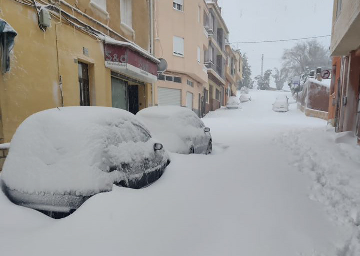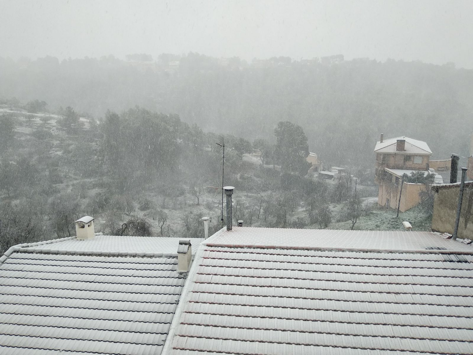 Banyeres de Mariola i Valencia fik allerede sne i går eftermiddag