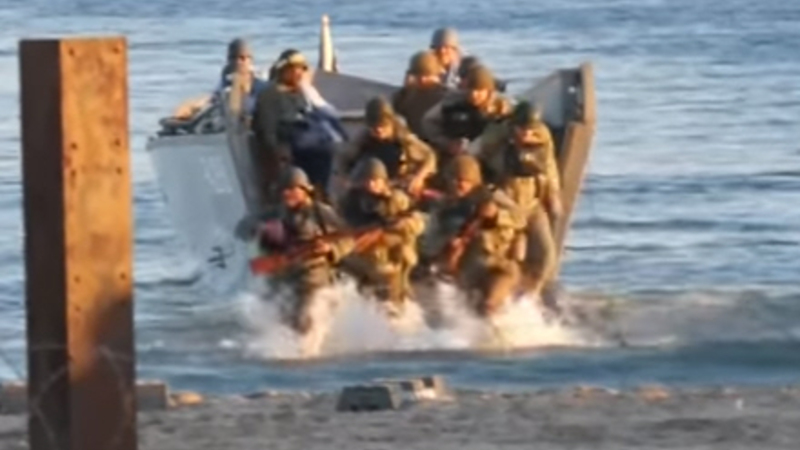 VIDEO: Måbende badeturister fik sig noget af en oplevelse, da de så den legendariske landgang i Normandiet fra først parket.