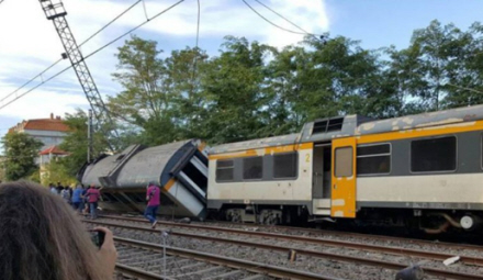 Første vogn af de i alt tre togvogne blev helt afsporet