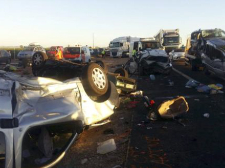 Ulykken i Manzanares involverede 15 biler og tre lastbiler, der ramlede sammen klokken 18:10 ved kilometer 170 A-4 med retning mod Madrid.