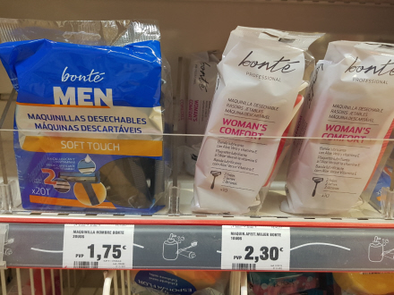 Jo, hvis du køber den i Carrefour, er den billige til mænd, mens den dyre er pakket i lyserød plastik og hedder Miss Express.