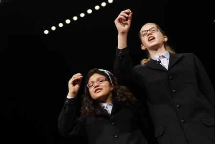 Klokken 9.09 gjorde eleverne fra San Ildefonso-skolen deres entré på Det kongelige Teaters scene. Ni piger og 11 drenge har traditionen tro opgaven med at synge numrene og de præmier, der trækkes til det pågældende nummer. Klokken 9:12 startede lodtrækningen.
