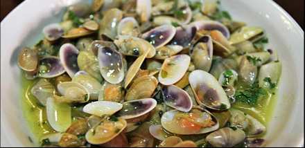 De små og meget lækre Coquinas tilberedt i en lækker sovs med hvidløg og urter