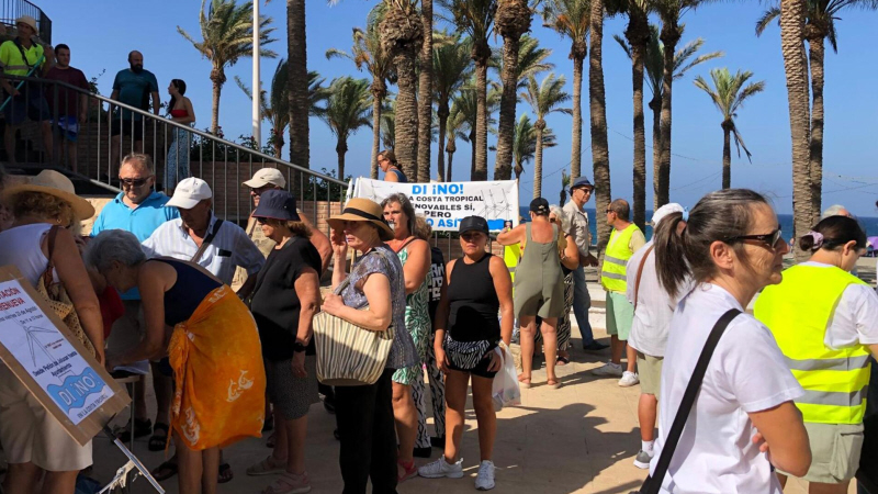 Flere hundrede personer deltog i en demonstration arrangeret af beboergruppen 'Sig NEJ! på Costa Tropical' fredag for at vise deres modstand mod de to planlagte mega havvindmølleparker, der lige nu er til behandling i Ministeriet for Økologisk Drift.