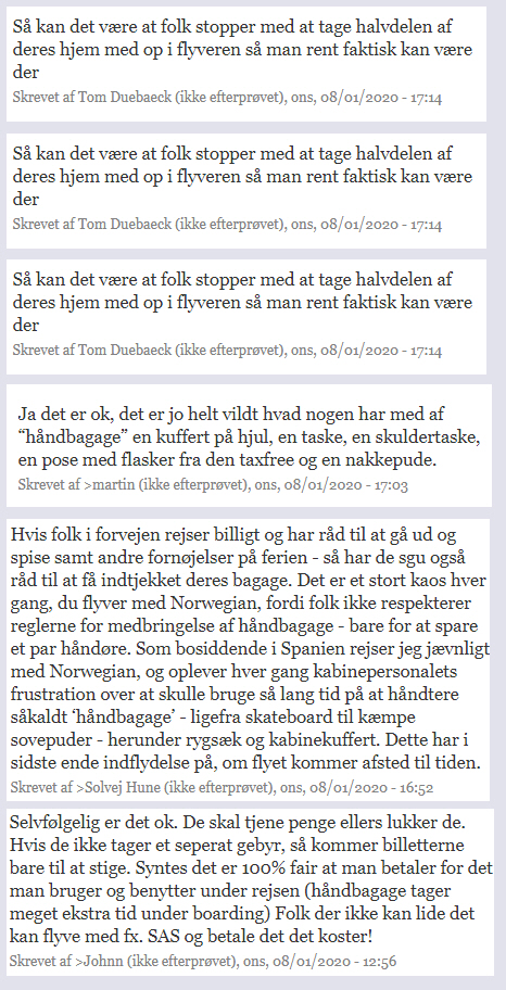 FLY & REJSE: Norwegian bekræfter over for Spanien i Dag, at man snart vil kræve penge for håndbagage. En sag, der i dén grad deler vandene hos vores læsere.
