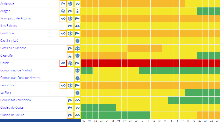 I løbet af dagen breder gråvejret sig til resten af halvøen og De Baleariske Øer dog i en svagere form undtagen i bjergene, hvor de vil være mere intense.