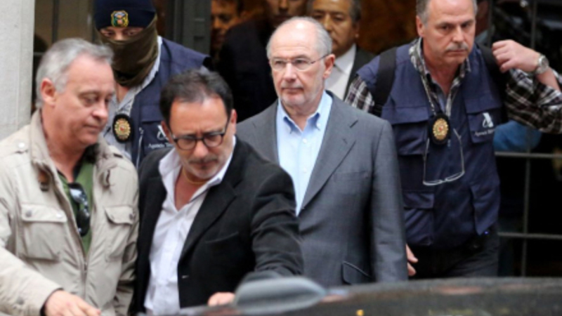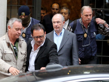 Fordi man er finansminister eller IMF-bos, er det ingen garanti for, at man har rent mel i posen. Han røg igen en tur gennem mediemøllen i går, da politiet hentede ham i hans hjem i Madrid.