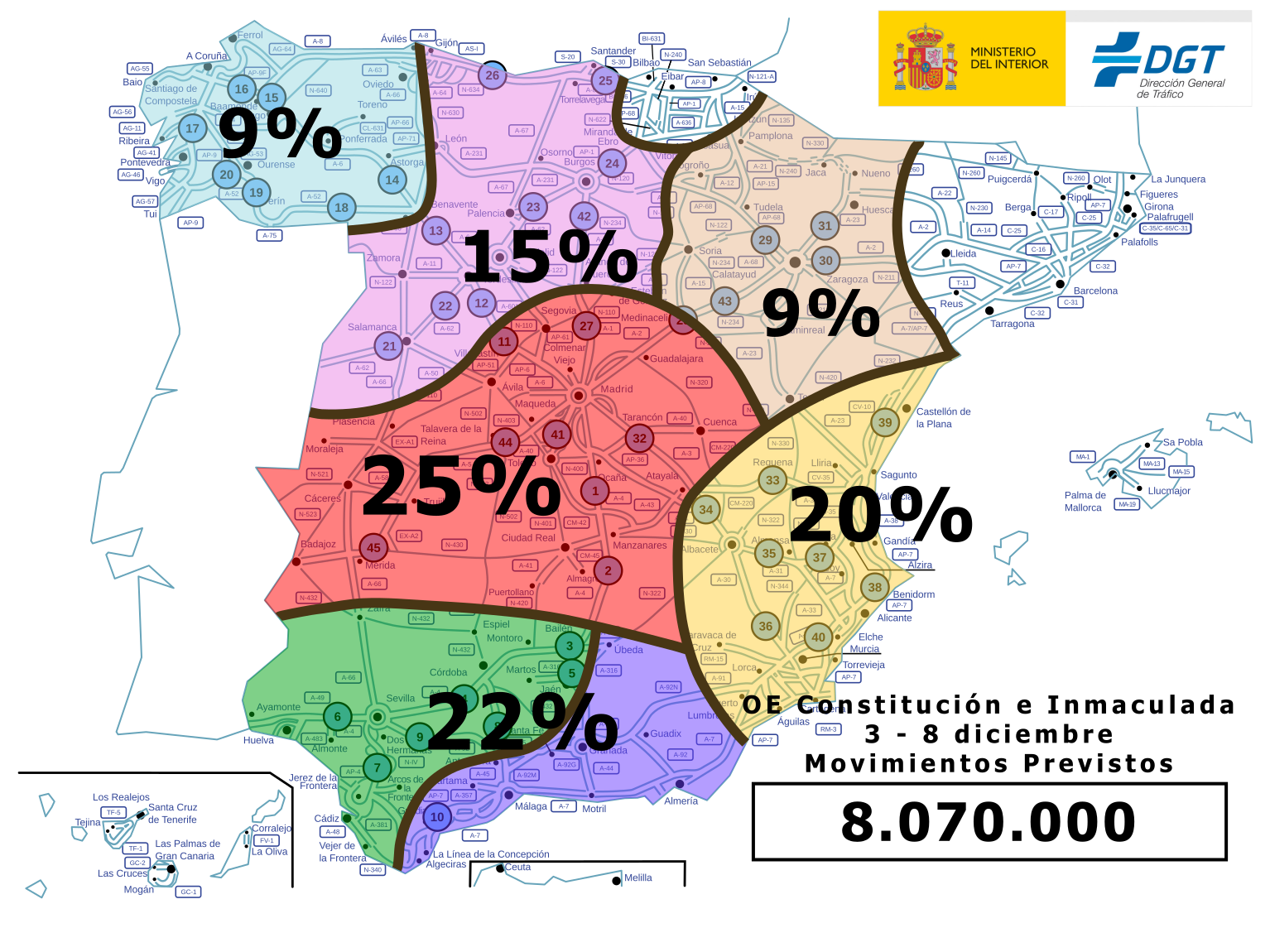 'Puente de la Inmaculada', som miniferien kaldes, giver ekstra meget trafik på vejene, og myndighederne forventer da også over otte millioner kørte ture.