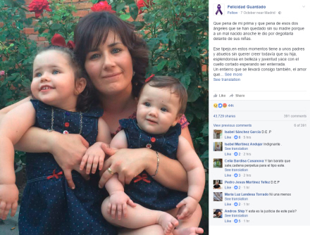 Et par timer efter mordet delte offerets kusine, Felicidad Guardado, sin sorg og frustration på facebook sammen med et billede af offeret og hendes to små piger.