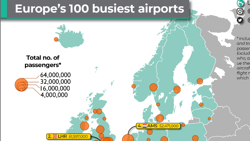 Tal fra Eurostat viser, at der er voldsomt stor forskel på, hvor travlt de forskellige lufthavne rundt omkring i Europa har.
