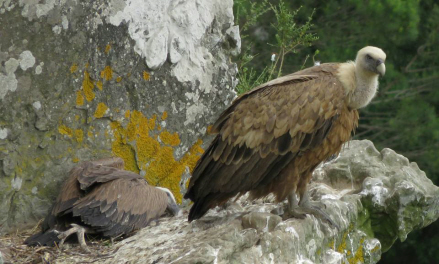 Stien går tæt forbi gribbenes tilholdssteder på den stejle skrænt. Denne havde ikke lyst til at flyve væk, og forklaringen er ret enkel: