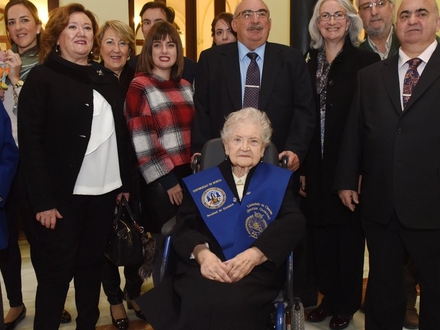 Som 94-årig har hun modtaget sit Kemi A-diplom og det smukke, blå bånd fra Rektor José Orihuela ved Murcias Universitet. Det skete ved en festlighed, hvor mange notabiliteter og akademikere var til stede. Det samme var hendes børn og børnebørn.
