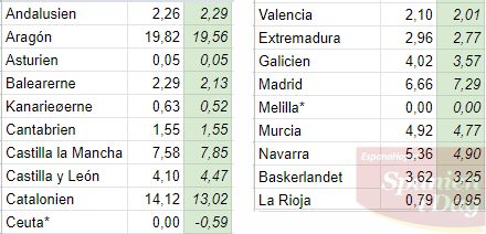 Tallene til højre i kursiv og med blå baggrund er det forrige tal, som vi har oplyst. Det giver dig en indikation af den daglige udvikling i hver region.