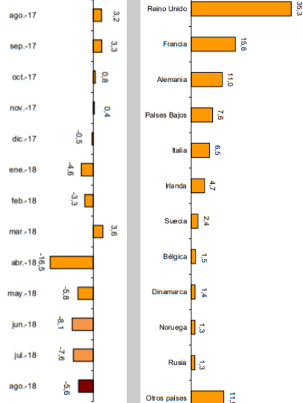 Samlet for juli og august blev antallet af overnatninger reduceret med 3,1 procent i forhold til samme periode i 2017. Her faldt antallet af spanske turister med 1,3 procent og udlændinge med 4,7.