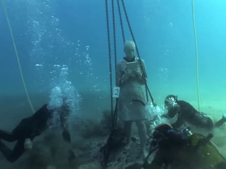 Nu er turen kommet til Lanzarote, hvor de første dele af udstillingen blev sænket i weekenden. Se, hvordan det gik til i videoen her: