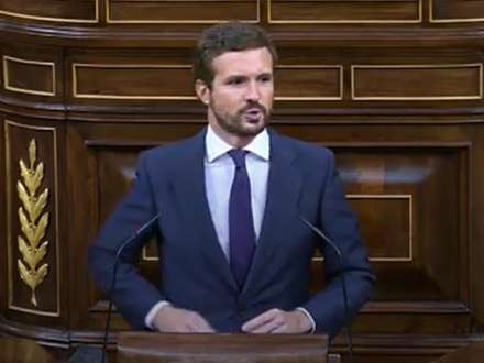 Pablo Casado fik ordet under Kongressens møde i går, efter finansminister María Jesús Montero i en lang tale havde redegjort for og forsvaret forsvaret næste års finanslovsforslag.